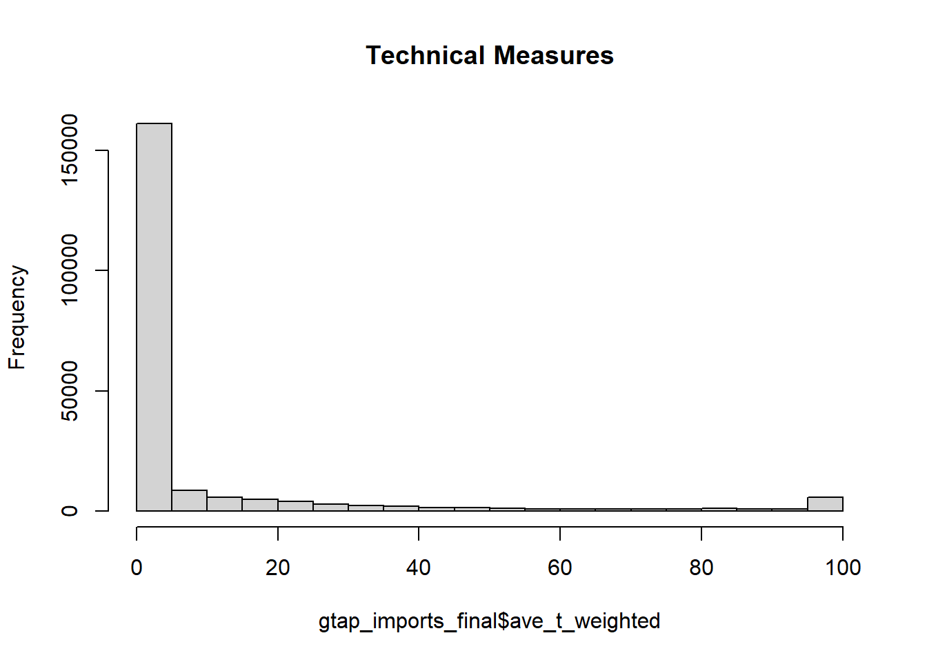 hist(gtap_imports_final$ave_t_weighted, main = "Technical Measures")