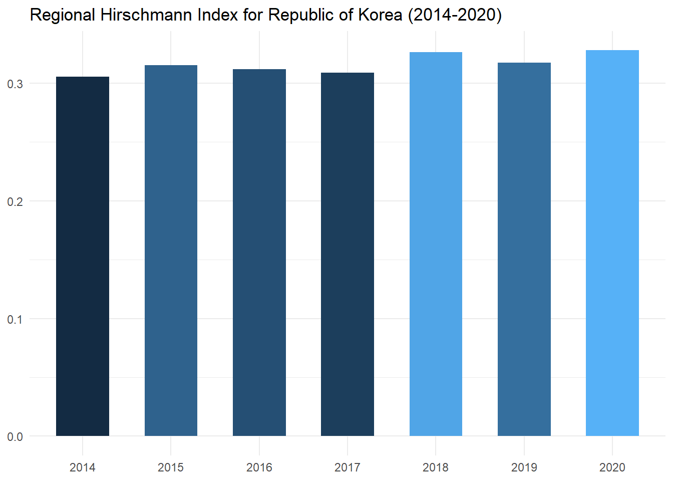 labs(title = "Regional Hirschmann Index for Republic of Korea (2014-2020)",