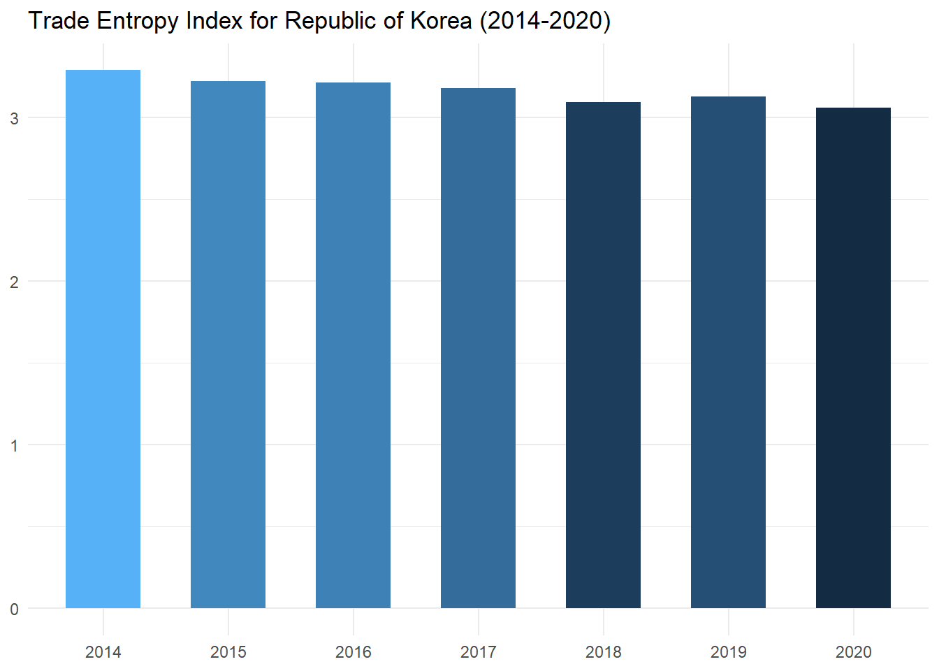 labs(title = "Trade Entropy Index for Republic of Korea (2014-2020)",